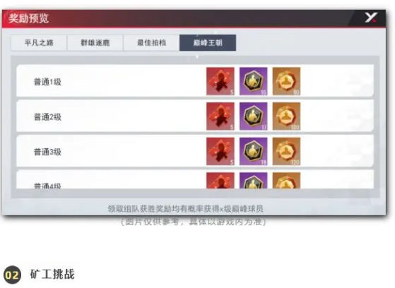 心仪的黑卡获取离不开巅峰积分的兑换,我们点击主界面右侧的兑换商店,在传奇商店即可看到用巅峰积分可兑换的X品质球员包。 我们获取黑卡的方法可以是:收集巅峰碎片合成随机X品质球员,将不需要的X品质球员兑换成巅峰积分,在兑换商店选取自己需要的X卡包。 了解了此方法后,让我们接着来看巅峰积分&巅峰碎片以及黑卡的获取吧! 通过挑战巅峰表演赛可获得巅峰碎片(1000巅峰碎片可合成随机黑卡), 并有几率获取X品质球员(组队挑战获取概率更高哦),每日可领取胜场奖励5次。 矿工挑战通关层数达80、110层时,进度奖励可各获得500巅峰碎片。达140、170层时可获得X自选包。 每周一至周五荣誉挑战会开放1间球馆供总裁挑战,通关可获得通关奖杯,获得通关奖杯后下周可在荣誉挑战礼包中领取到巅峰积分。